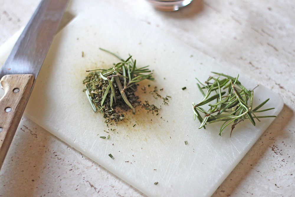 Chop the rosemary as fine as you can, till you get enough to fill a tablespoon.