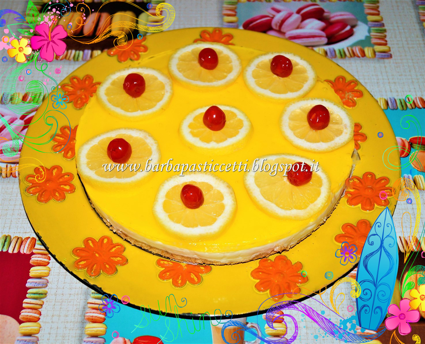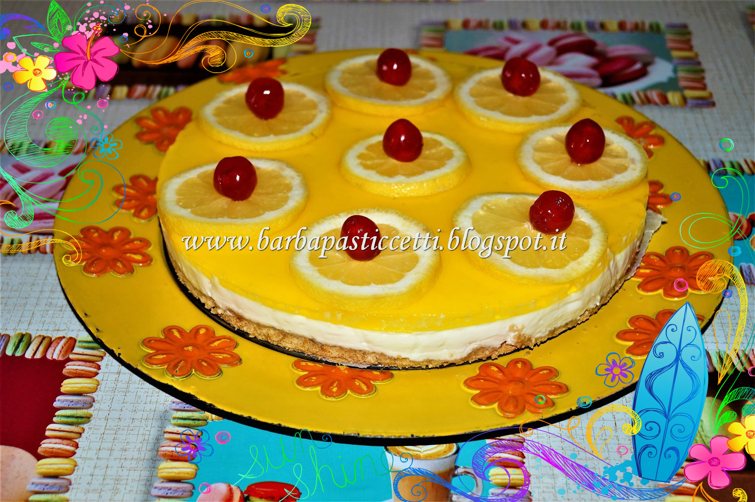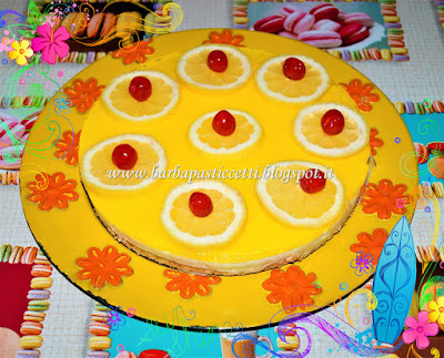 Decorarla a piacere, nel mio caso con fettine di limone e ciliegie candite e tenerla in frigorifero sino al momento del consumo.