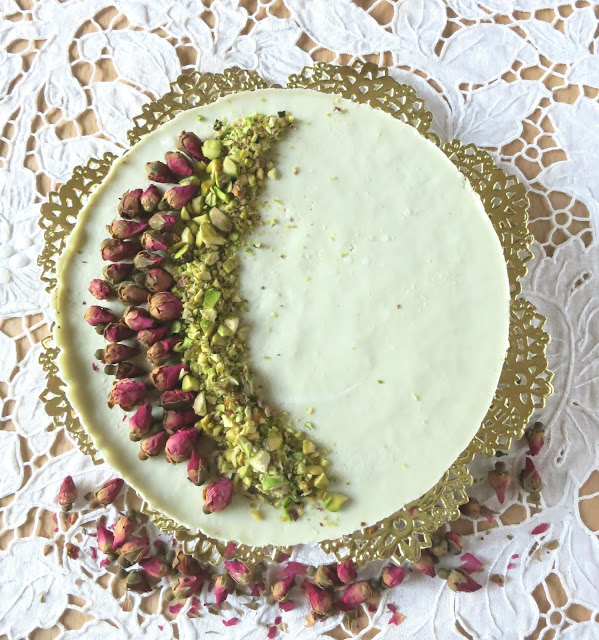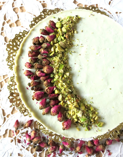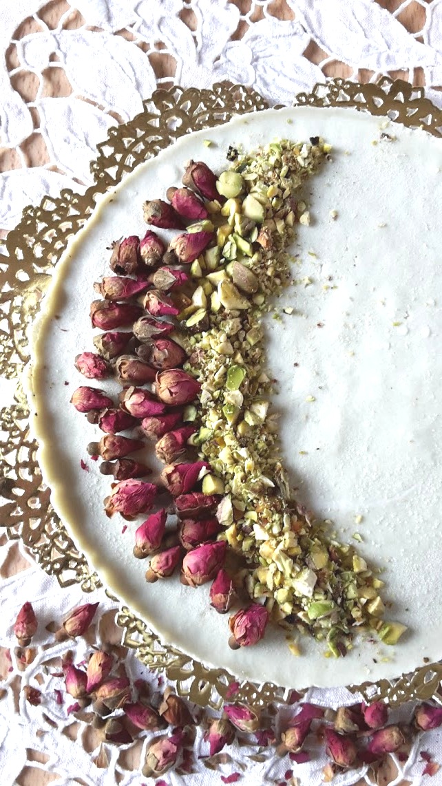 Decorare con pistacchi tritati e se si hanno a disposizione delle roselline essiccate…