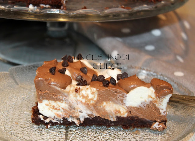 Cheesecake bigusto, preparata con tanti ciuffetti di crema alla vaniglia e crema al cioccolato