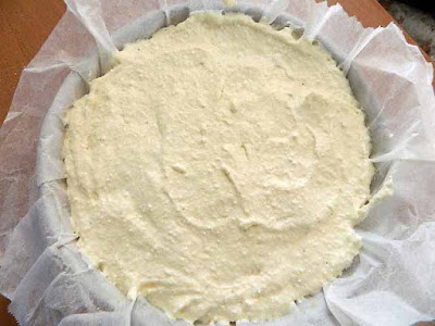 Versare il composto di formaggi sulla base di grissini tritati, livellare e infornare a 180° per 40 minuti.