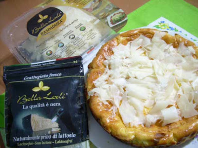 ricotta e mascarpone ho usato Il Grattugiato Fresco Bella Lodi, un formaggio naturalmente privo di lattosio e per dare ancora più sapore e per guarnire la cheesecake ho usato la Raspadura Bella Lodi delle sottilissime sfoglie fatte rigorosamente a mano.
