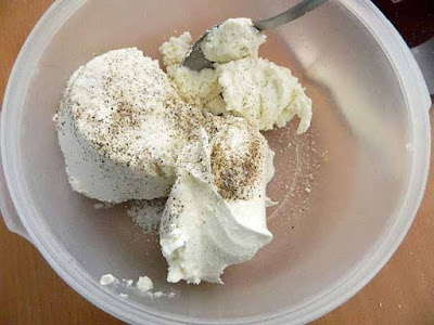 In una ciotola mettere la ricotta, il mascarpone, sale e pepe,