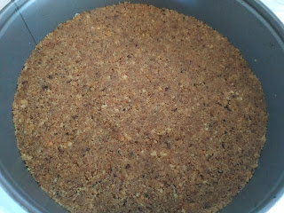 Tritate i biscotti con un mixer e amalgamateli al burro fuso. Compattateli per fare la base della torta e fate raffreddare in frigo.
