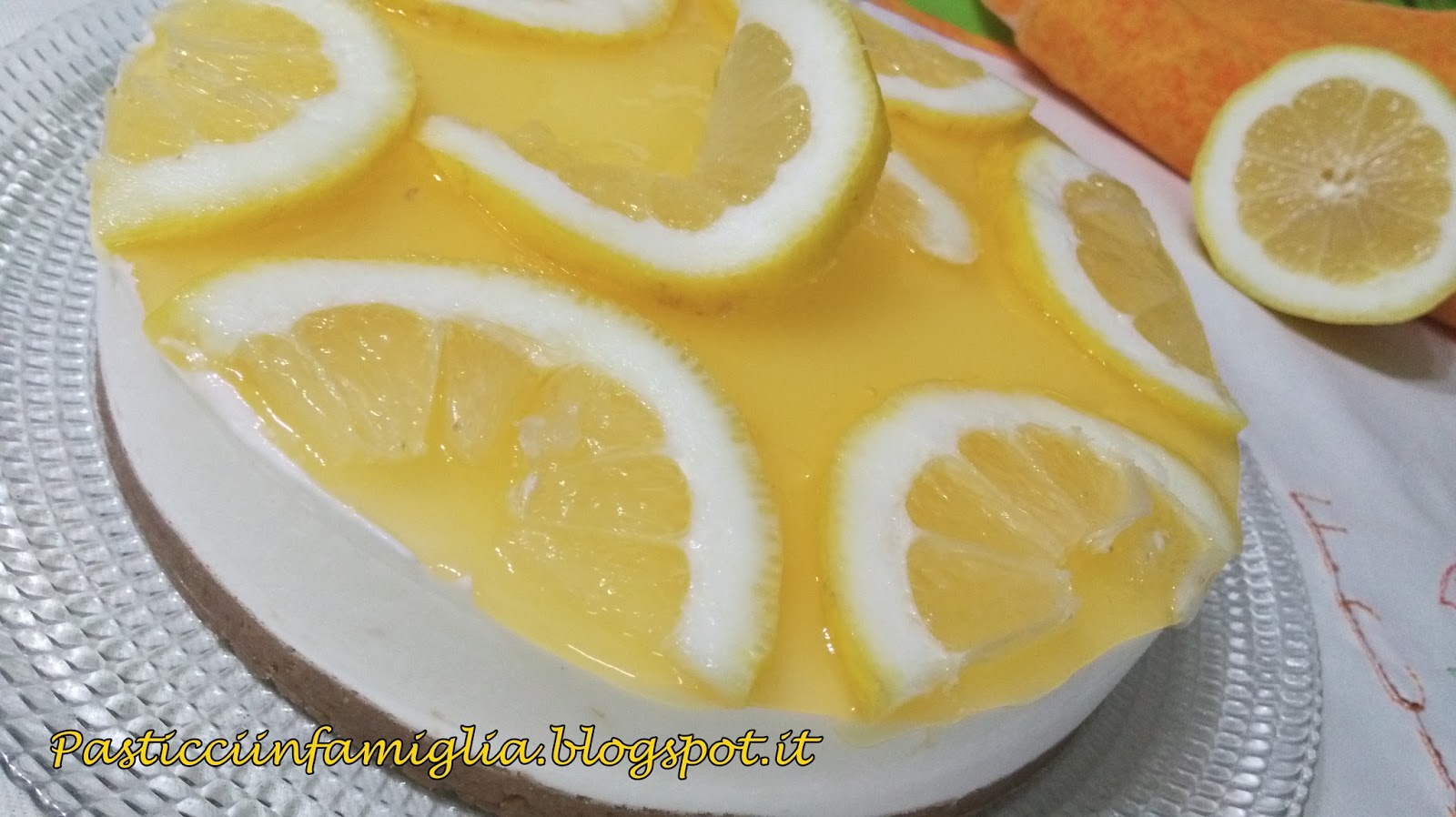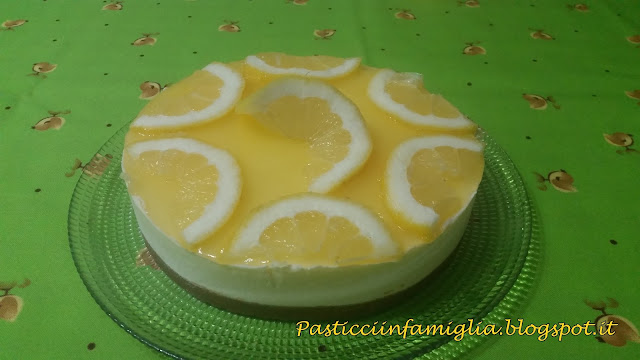 Togliete dal fuoco e lasciate intiepidire continuando a mescolare.Ora prendete la cheesecake fredda e ci versate sopra la crema, distribuitela con un cucchiaio ben bene in modo compatto. Ora lasciate in frigo per 1 ora minuti o freezer per 30 minuti. A questo punto togliete la cheesecake dal frigo (o freezer), aiutandoci con un coltello togliete la cheesecake dall’anello di acciaio o aprite la tortiera sganciabile. Tagliate a fette il limone e decorate a piacere
