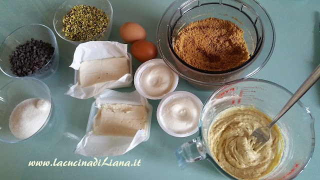 Tritare nel mixer i biscotti, quindi amalgamarli con il burro fuso e intiepidito. Imburrare uno stampo a cerniera, quindi rivestirne fondo e pareti con il composto di biscotti e burro, cospargere il fondo di granella di pistacchi e riporlo in freezer per 30 minuti.