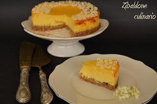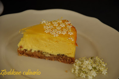 Prima di togliere l’anello della teglia, aggiungete la gelatina al sambuco in modo da ottenerne uno strato più significativo, non fate come me (ero troppo curiosa di vedere le proporzioni biscotti/crema)!