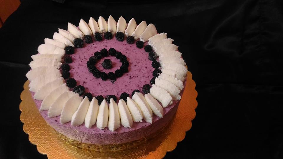 Quando prelevate il dolce dal freezer togliete la pellicola per alimenti e mettetelo su un piatto da portata e decorate la superficie con panna e more a piacere