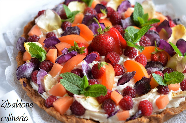 Decorare a piacere con frutta e petali di rosa brinati. Tenere in frigorifero fino al momento di servirla.