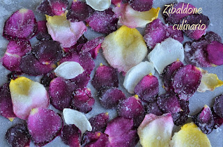 In questo caso ho utilizzato pure i petali brinati, che avevo preparato per il Calendario del cibo Italiano (qui).