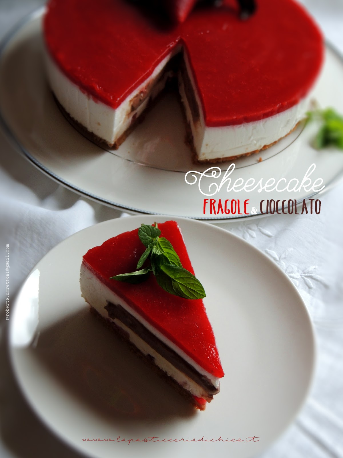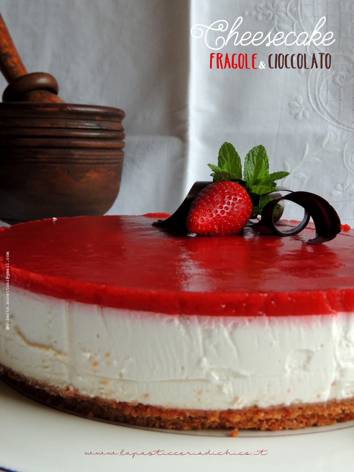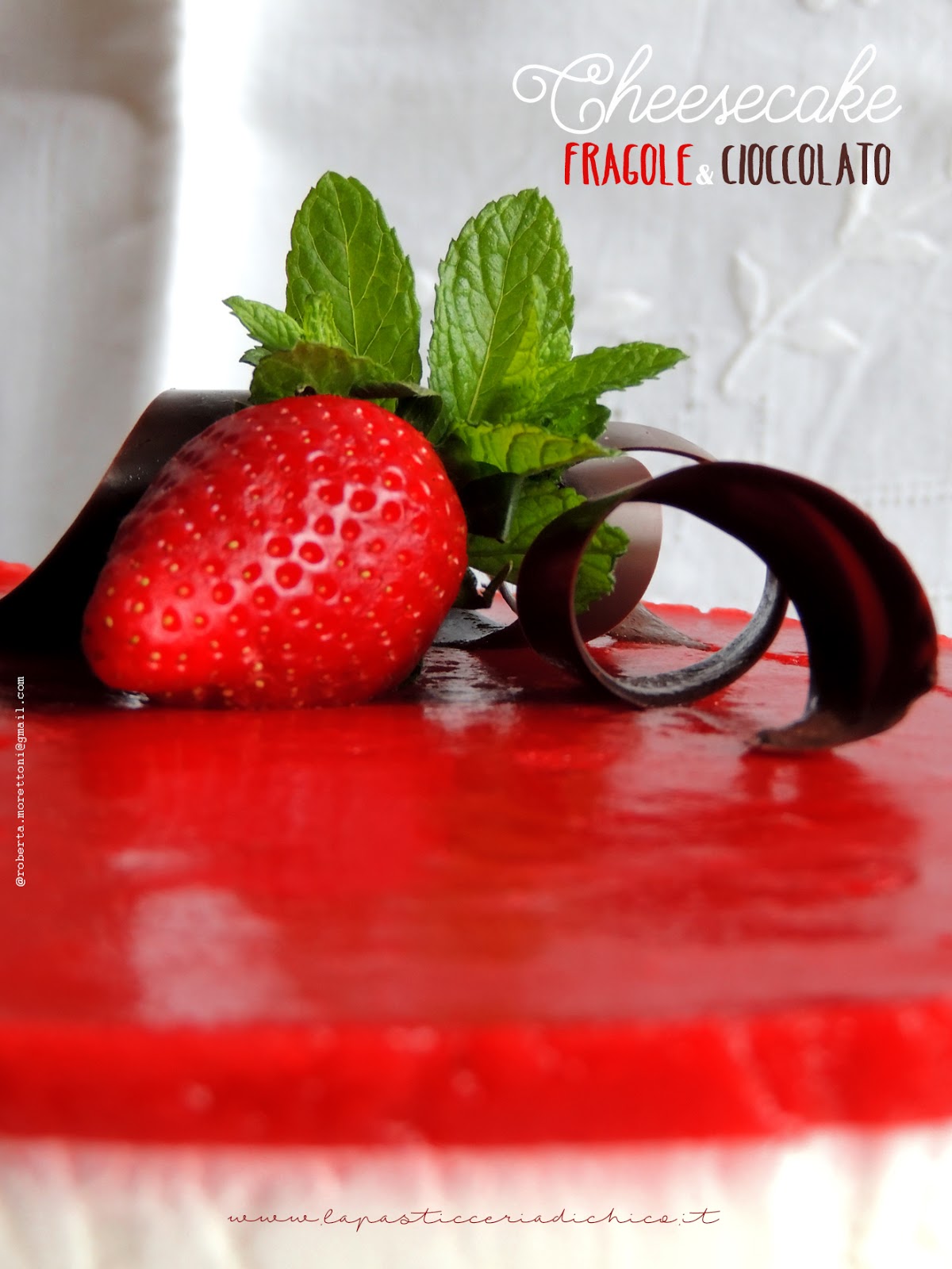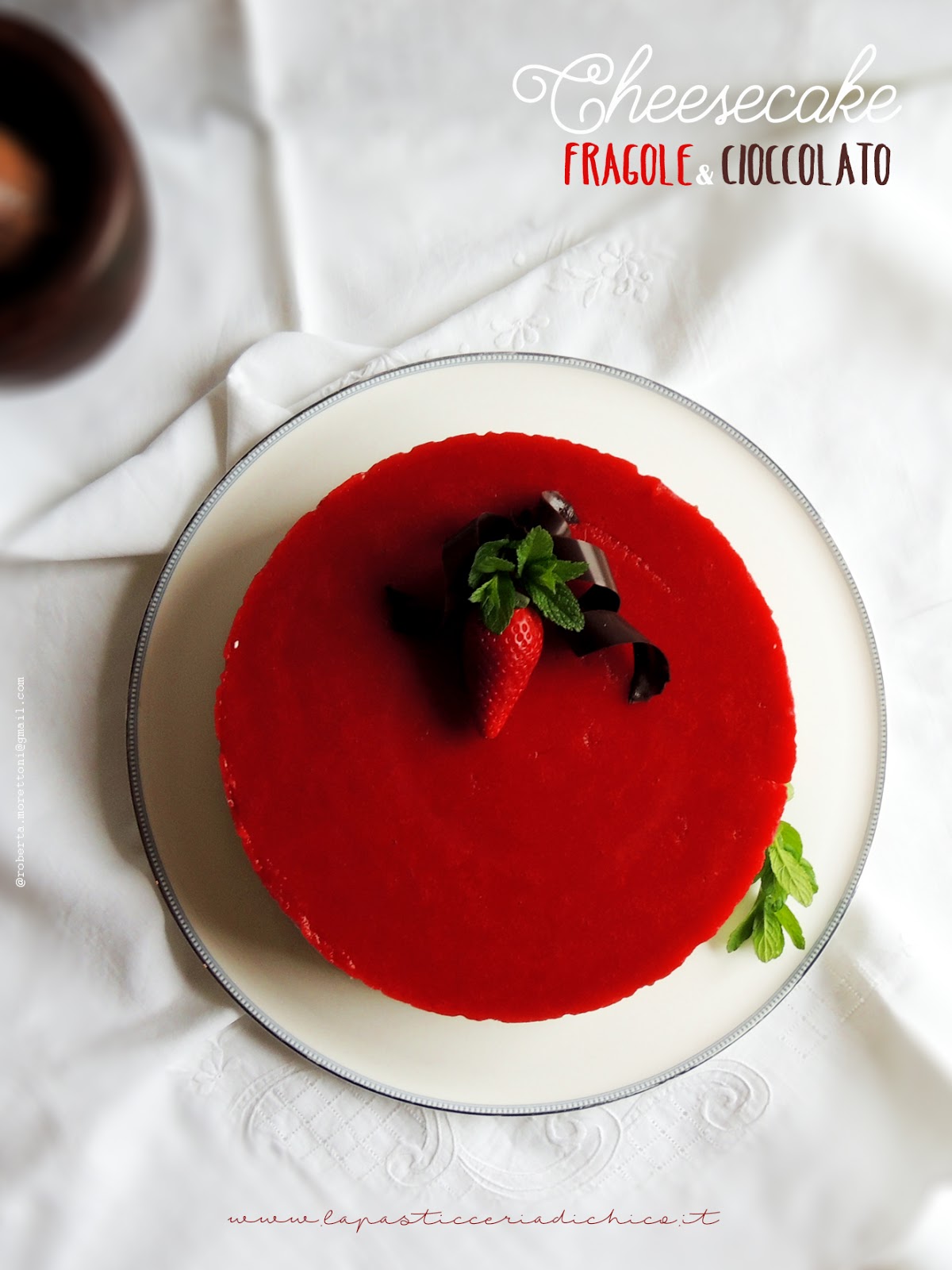 Uno tra i più classici dei dolci da fare in casa, trasformato in un raffinato dessert, il Cheesecake Fragole e Cioccolato