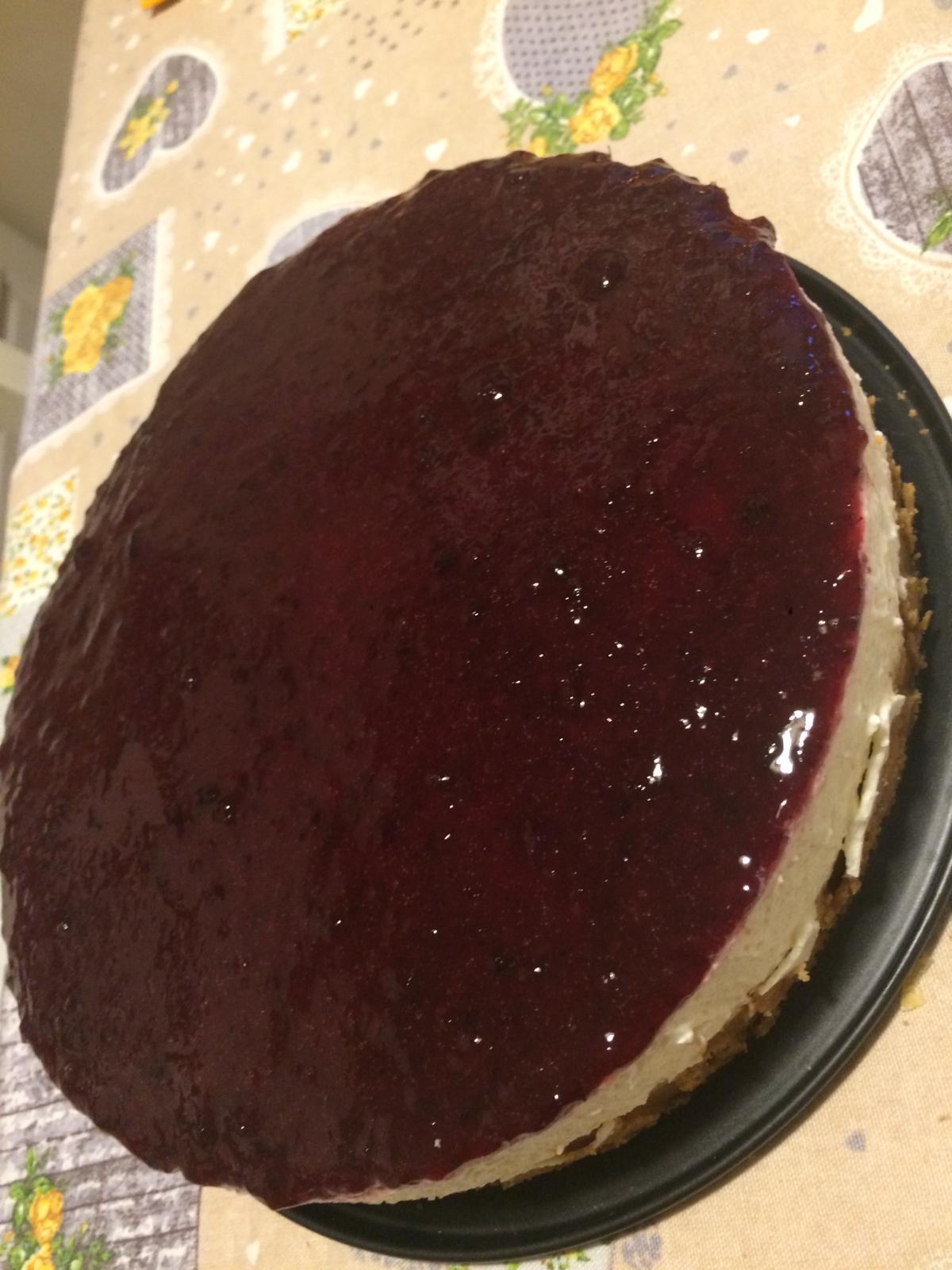 Preparate il topping scaldando la marmellata con mezzo bicchiere di acqua. Nel caso in cui non risultasse troppo dolce aggiungete dello zucchero a velo. Disponete la marmellata sulla torta e fate riposare in frigorifero per almeno un’altra ora.