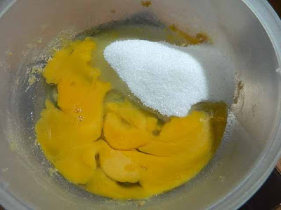 In una ciotola unire le uova con lo zucchero e montare fino ad ottenere un composto chiaro e spumoso.