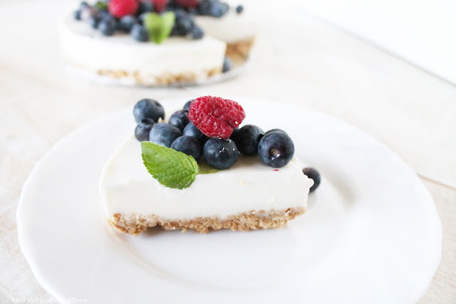 Ma basta smancerie… torniamo alla ricetta! Una base di biscotti secchi e pochissimo burro con una golosa crema senza grassi e con tante proteine! Per una colazione leggera, ma completa e con un indice glicemico che non sfiora le stelle come invece accade con le classiche cheesecake!!