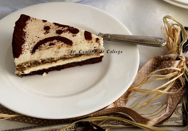 Sformare il dolce su un piatto da portata, spolverizzare con il cacao e ….buona cheesecake al tiramisù senza uova!