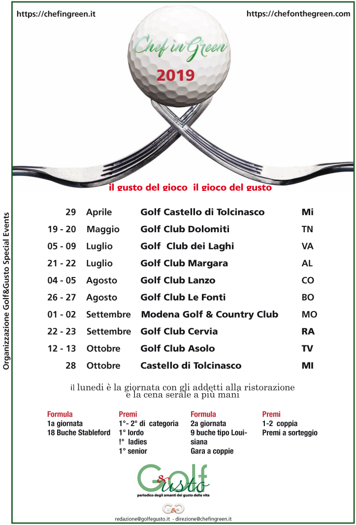 Nella splendida cornice del Castello di Tolcinasco Golf Club si è svolta lunedì 29 aprile 2019, la tappa inaugurale della nuova stagione del circuito Chef in Green 2019 evento itinerante giunto alla sua quinta edizione che unisce l’eccellenza della ristorazione al mondo del golf.