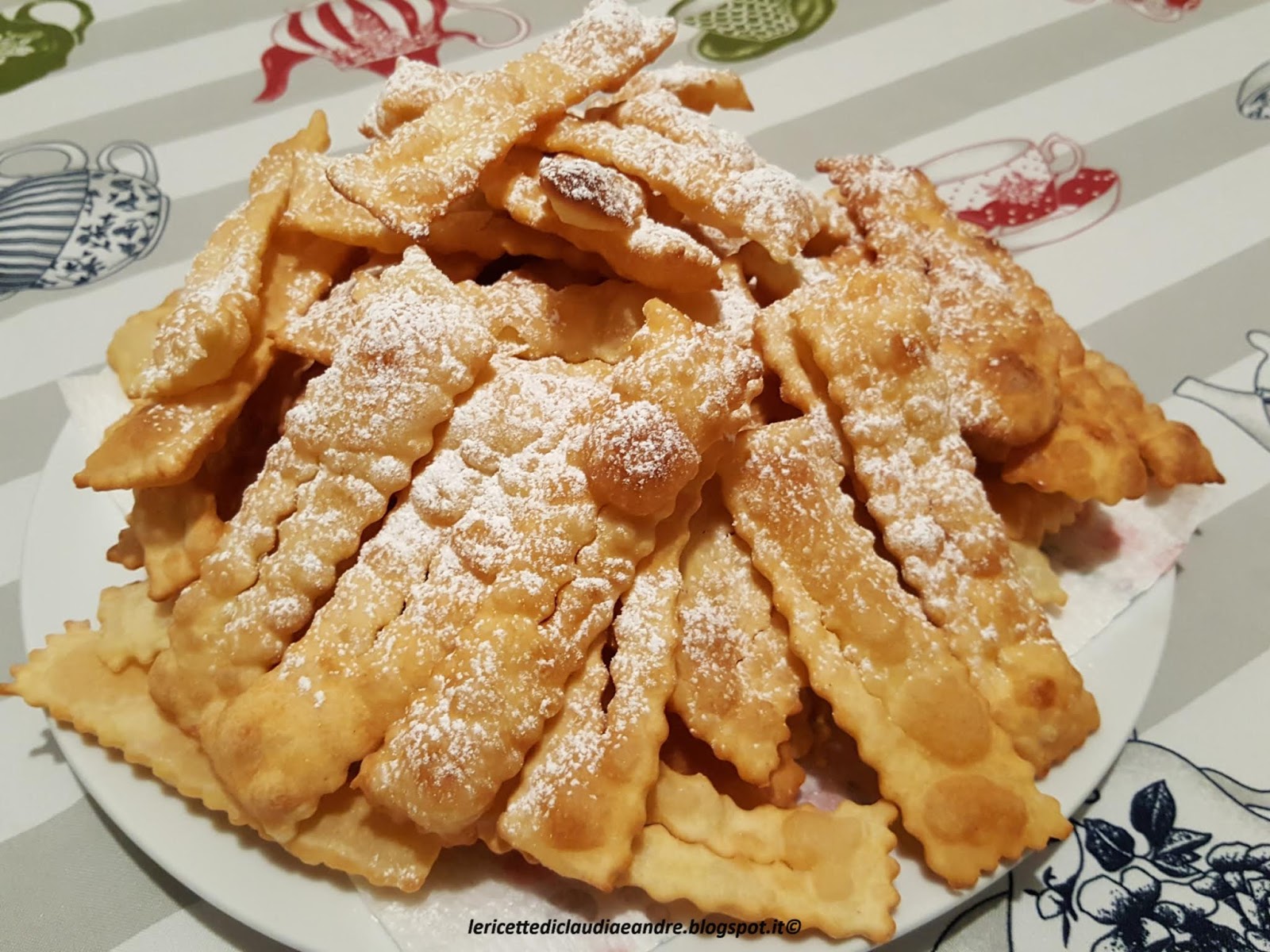 A me carnevale non mi dice niente, non amo questa festa come tante altre, mi piace considerare tutti i giorni uguali ed apprezzare ognuna con quella che offre tra alti e bassi. Ultimamente le feste sono più per girare l’economia che per altro a mio avviso, ma voglio comunque essere gratta per questi dolcetti golosi che si preparano in questo periodo e che io li preparo anche quando ne ho voglia durante l’anno. Siccome sul commercio c’erano così tanti che non si poteva passare inosservate e ciò che mi ha spinto a prepararle anche io in casa, dopo aver assaggiato anche comprate e non che sono rimasta molto entusiasta. Ciò che è bello dalle cose preparate in casa è che si sa con cosa sono fatte e si mangiano con più gusto. Ma lasciamo stare le chiacchiere e mangiamone un paio.