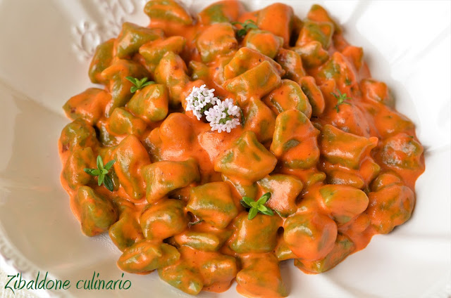In una pentola alta, far bollire acqua salata, calare i gnocchetti e non appena salgono a galla saltarli in padella con il sugo al pomodoro. Servire subito.
