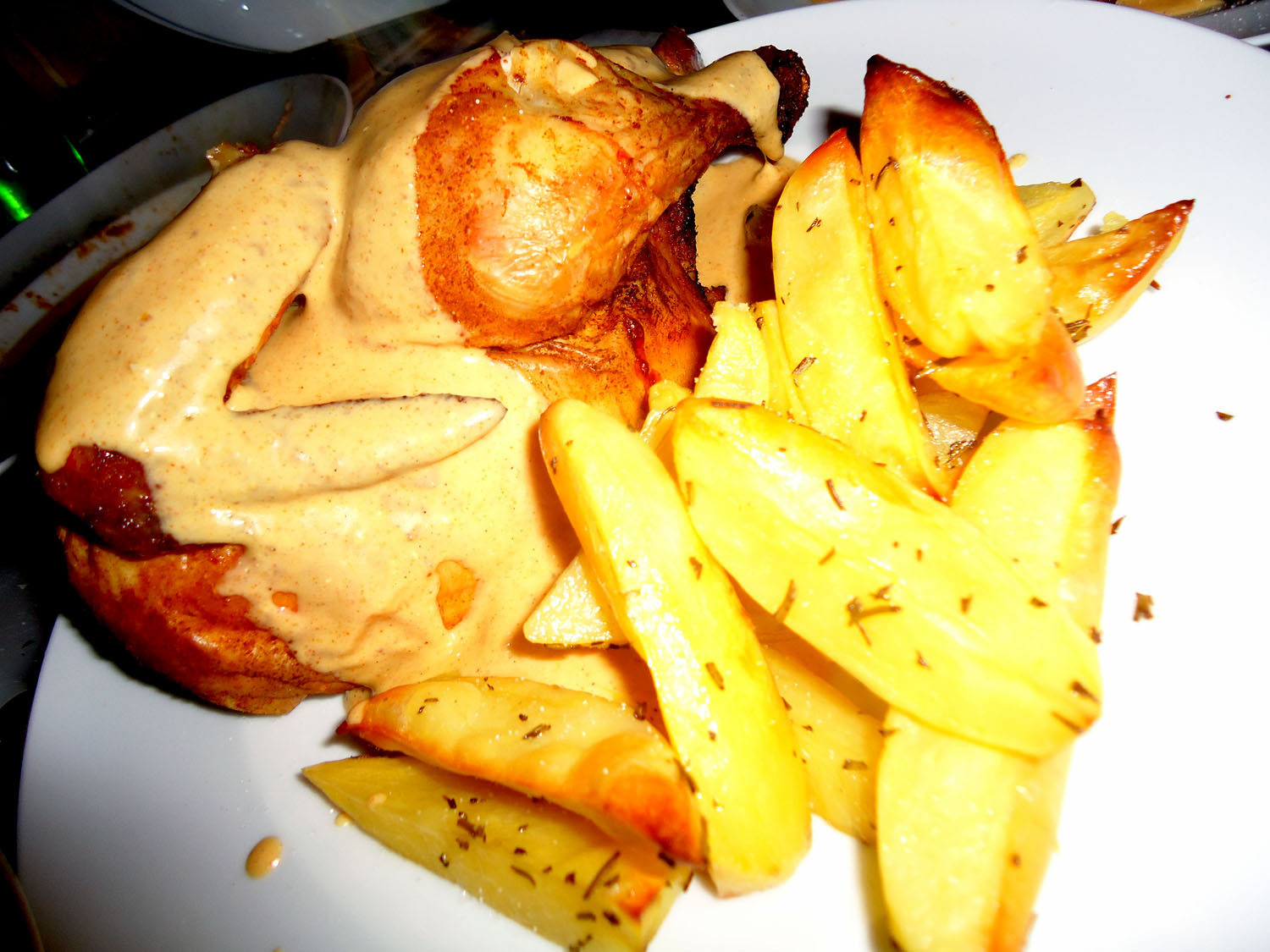 1 cucchiaio di semi di senape polverizzati– 1 cucchiaio di curry madras– 1 cucchiaio di chili in polvere– 1 cucchiaio e mezzo di sale fino– 1 cucchiaino di pepe nero– 2 cucchiai di paprika dolce– 1 cucchiaio di zucchero di canna, 1 Pollo– brodo di verdure– rosmarino