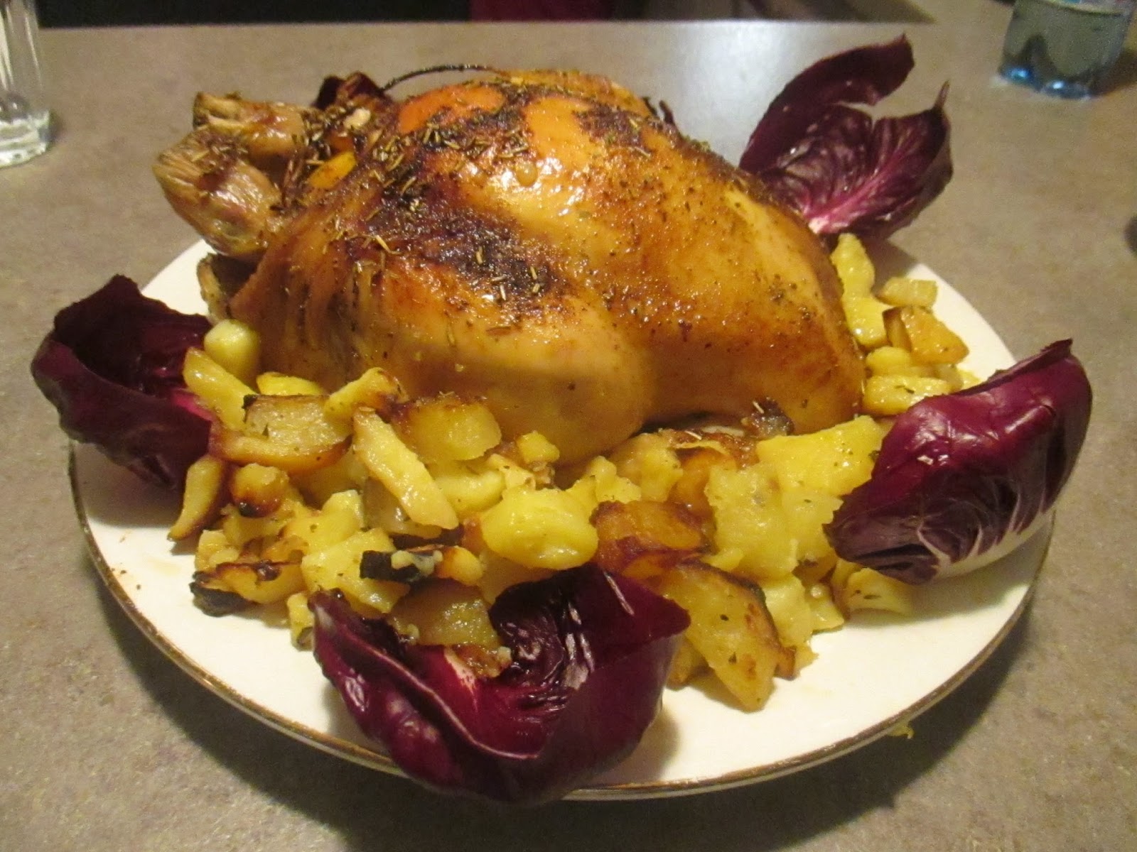 A fabulous roast chicken stuffed with this many good things and high quality. The process is long and challenging, but the end result is exhilarating!