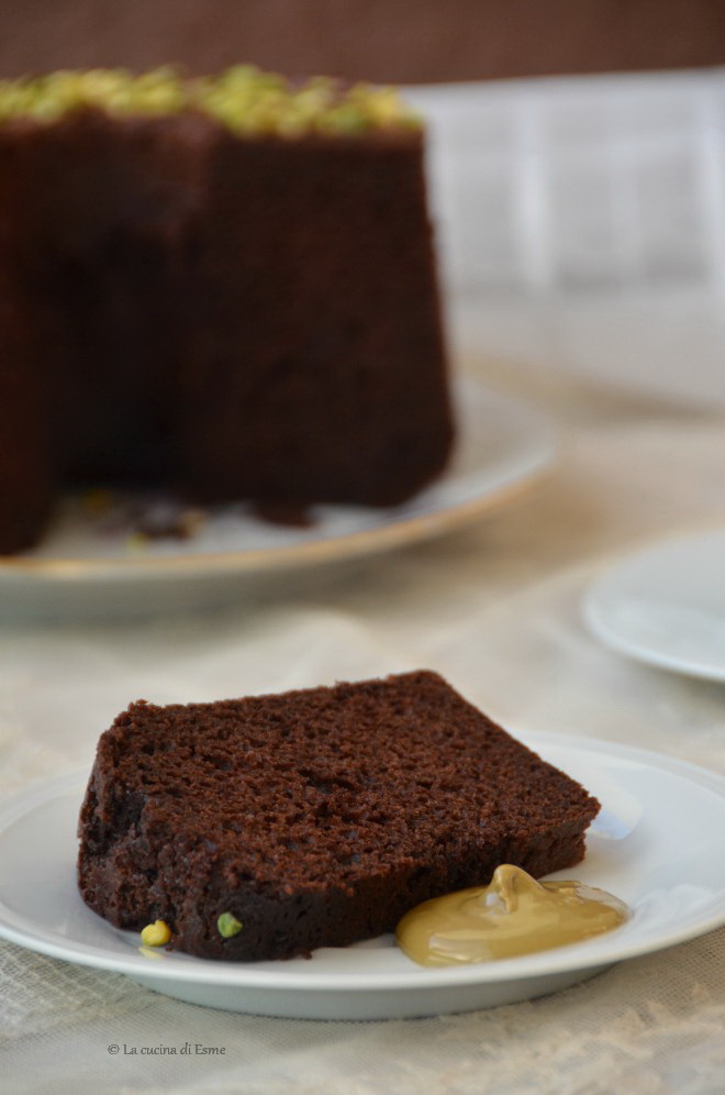 Chiffon cake al cacao con crema di pistacchio di Bronte