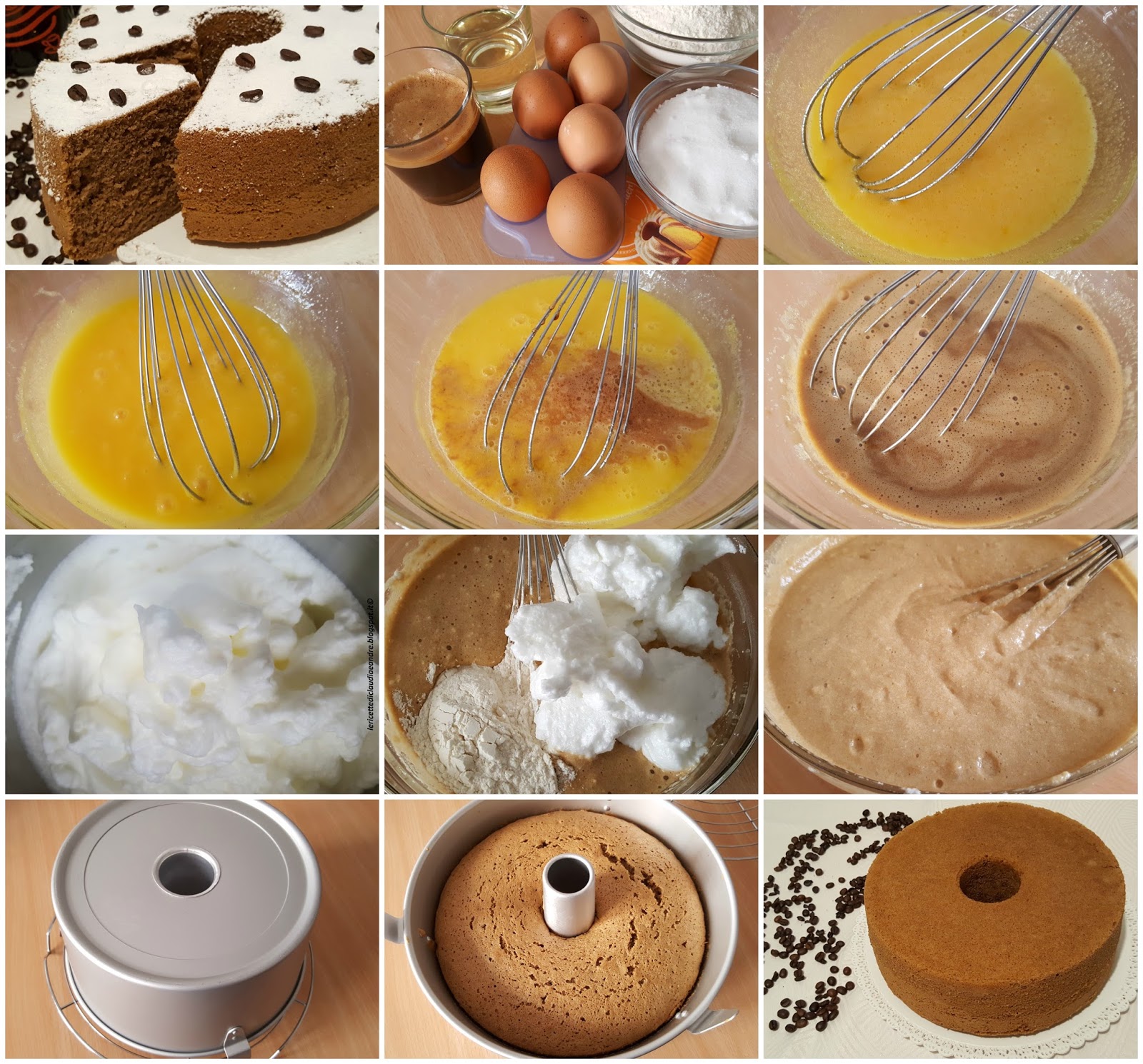 - Versare il composto all’interno di uno stampo da chiffon cake da 25 cm di diametro (lo stampo si dice che non deve essere imburrato né infarinato, ma io l’ho fatto).