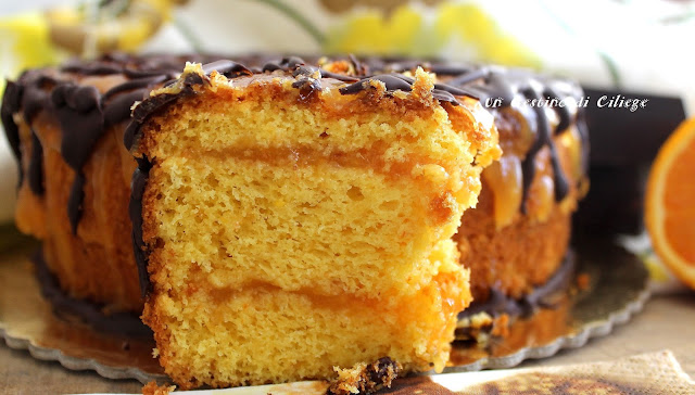 Ciambella soffice e leggera al profumo d’arancia, arricchita con crema all’arancia fresca e glassata con cioccolato fondente, e’ un’ottima torta per ogni occasione!