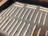 Per le meringhe: montate gli albumi con lo zucchero. Versate la meringa in una tasca da pasticceria con bocchetta liscia del ’10. Formate tanti bastoncini (foto 3) tenendo da parte un po’ di meringa che servirà per la glassatura. Infornate le merighe in forno a 90° per circa 2 ore.