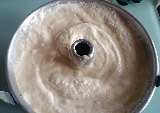 Versare nello stampo da chiffon cake (non imburrato) e infornare a 180° per 40 minuti.