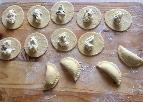 Spennellate i bordi dei cerchi con un po’ d’acqua, dopodichè chiudete la pasta schiacciando bene i bordi con una forchetta, formando delle mezzelune. Friggete i chinulilli in una padella con abbondante olio extra vergine di oliva e una volta cotti scolateli e poneteli su un vassoio ricoperto con della carta assorbente.