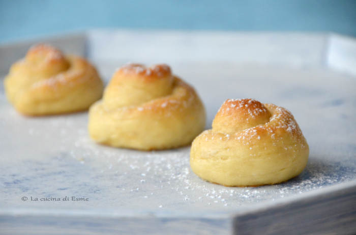 A volte mi sembra che il tempo scorra troppo veloce, non solo la giornata, ma le settimane, i mesi … gli impegni, il lavoro, le preoccupazioni … tutto mi sembra che aiuti questo correre vorticoso che fagocita il mio spazio ed il mio tempo. Ed invece io vorrei solo che la vita fosse un susseguirsi costante di attimi di semplice tranquillità, momenti sommati a momenti in cui tutto scorre lieve, non voglio vincere la lotteria, non sogno una carriera diversa, non desidero cambiare nulla di me, indosso con orgoglio anche le mie rughe perché sono il segno di quella che sono, delle mie esperienze, dei miei sorrisi e dei miei pianti. Desidero solo più tempo e giornate piene di normalità, senza nefaste sorprese … attimi di serenità passeggiando per mano con il mio uomo, abbracciando mia figlia, chiacchierando con un’amica …vorrei accoccolarmi tra le pagine di un libro o tra le note di un violino, ammirando un tramonto e godendo di un raggio di sole caldo … vorrei più tempo per mettere le mani in pasta e sfornare per chi amo dolci coccole da condividere in armonia, come queste profumatissime brioche.