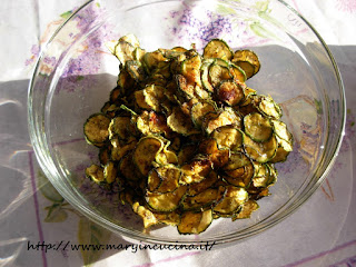 Affettare con la mandolina le zucchine, aggiungervi i condimenti e massaggiarle per far aderire bene le spezie, distribuirle sui cestelli dell’essiccatore. Essiccare per 24 ore.