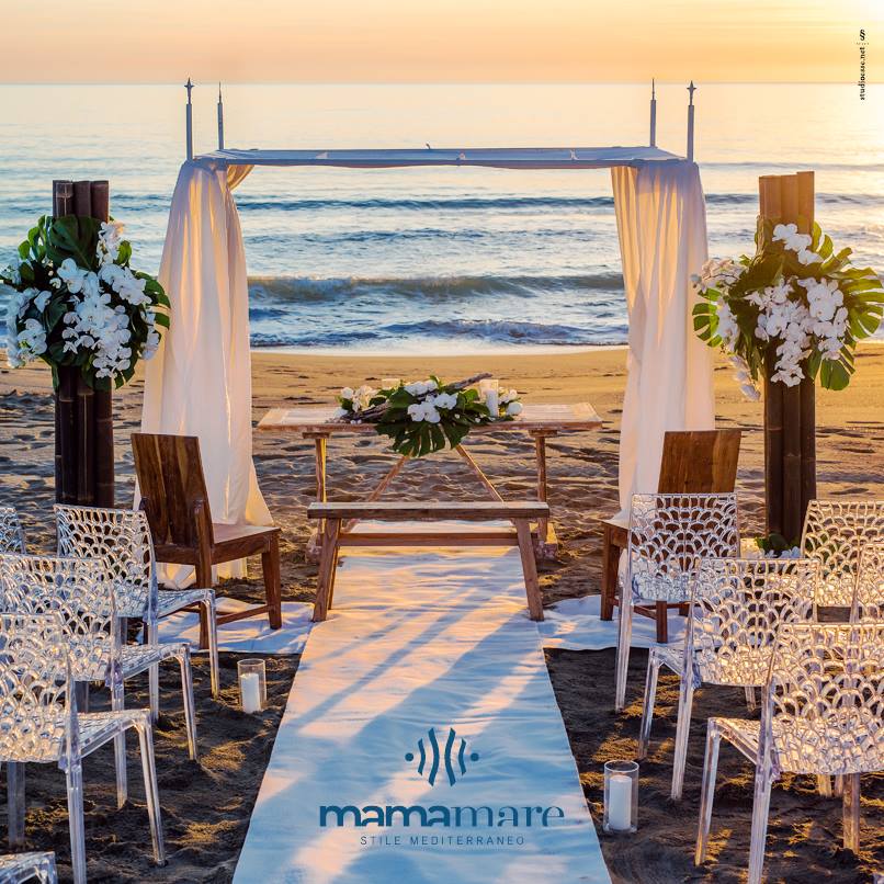 Mama Mare è la location ideale per chi sogna di sposarsi a piedi nudi sulla sabbia e celebrare il taglio della torta sullo spettacolare sfondo dei fuochi a mare. La location è luogo ideale per matrimoni in stile mediterraneo dai colori naturali, materiali organici e cucina di mare.