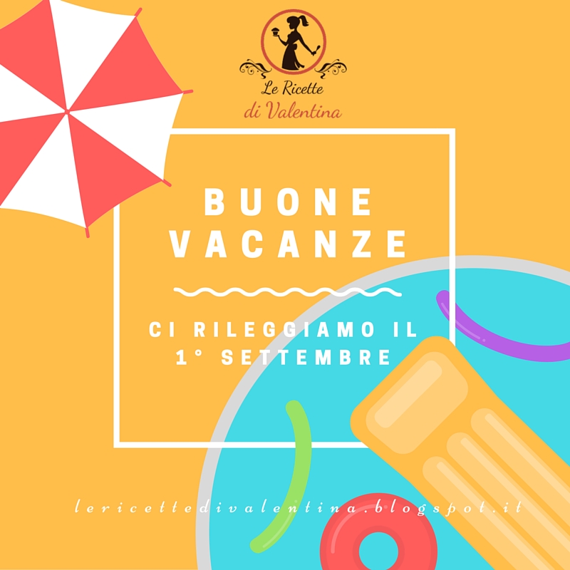 L’esigenza è quella di prendermi un po’ di tempo per “/redirect.php?URL=studiare”, durante l’anno il tempo scarseggia, tra lavoro casa e famiglia e spesso la frustrazione prende il sopravvento perchè ho tante idee ma poi non ho abbastanza ore disponibili nella giornata per poterle sviluppare. Così agosto il blog resterà fermo, in modo da permettermi di dedicare il mio tempo libero allo sviluppo e alla divulgazione delle Ricette di Valentina per ripartire alla grande dal 1° di settembre.