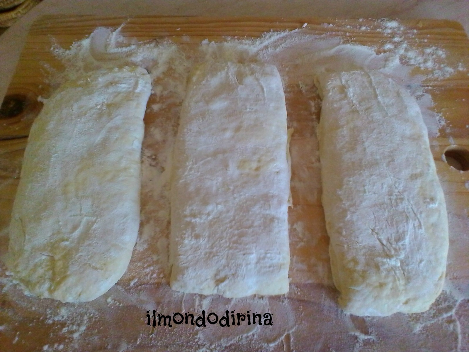 Quando l’impasto sarà raddoppiato versatelo sulla spianatoia infarinata e delicatamente dategli una forma rettangolare. Con un tarocco tagliate delle strisce delle dimensioni desiderate e lasciate lievitare per altri 30/40 minuti, spolverandole bene di farina.