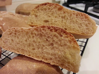 Togliere la pasta dalla ciotola, dividerla in 6 pezzi uguali e formare con ognuno una ciabatta piatta e allungata.