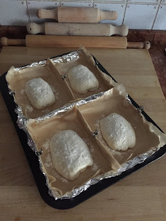 Io mi sono anche “costruita” una teglia a scomparti, utilizzando dei fogli di alluminio per formare le divisorie. Ho poi tagliato la carta forno a misura e con alcune pinzette l’ho bloccata all’alluminio.