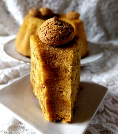 Volendo spolverizzarlo con lo zucchero e velo e decorarlo con degli amaretti che fanno figura e ricordano l’essenza del dolce.