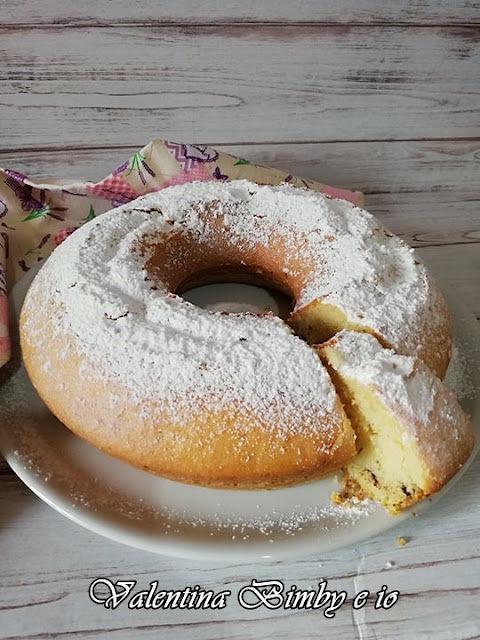 Mettere nella brocca del MAMBO 9090 oppure nel boccale del BIMBY, tutti gli ingredienti tranne le gocce di cioccolato e lavorare 1 Minuto Velocità 5, aggiungere le gocce di cioccolato precedentemente infarinate e mescolare il composto con la spatola, versarlo all’interno di uno stampo a forma di ciambella da 26 cm di diametro precedentemente imburrato e infarinato e cuocere in forno già caldo a 170-180° per circa 40-45 minuti, fare sempre la prova stecchino per verificare la cottura, eventualmente cuocere ancora per altri 5-10 minuti fino a quando lo stecchino si presenterà asciutto. Una volta cotta, togliere la ciambella dal forno, farla intiepidire un po’, trasferirla in un vassoio, aspettare che si raffreddi e poi servire !