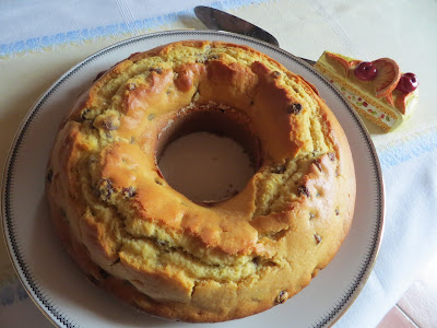 Cuocete nel forno già caldo per 45 minuti. Sfornate la ciambella e lasciatela raffreddare sulla gratella per dolci.