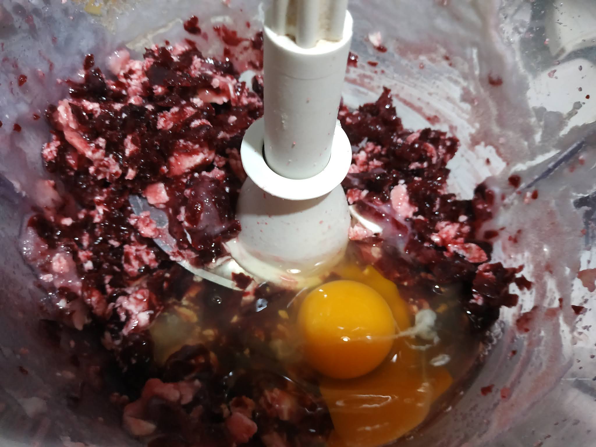 300 g di farina 00, 180 g di zucchero, 300 g di barbabietola cotta, 3 uova, 1 vasetto di yogurt, 150 g di burro, 50 g di cacao, scorza grattugiata d’arancia, 1 bustina di lievito.