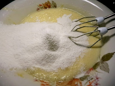 La farina setacciata precedentemente con il lievito e il pizzico di sale e unita poca per volta facendola passare attraverso uno spargifarina o un setaccino…