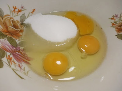 In una capace scodella sbattere con le fruste elettriche le uova ( a temperatura ambiente) con lo zucchero per almeno 2′/3′ a velocità massima..