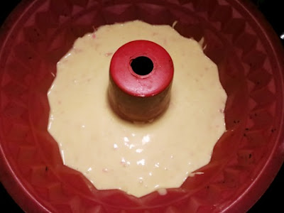 Versare il tutto in uno stampo di silicone con foro centrale sbattendolo un poco sul piano di lavoro per farlo assestare..