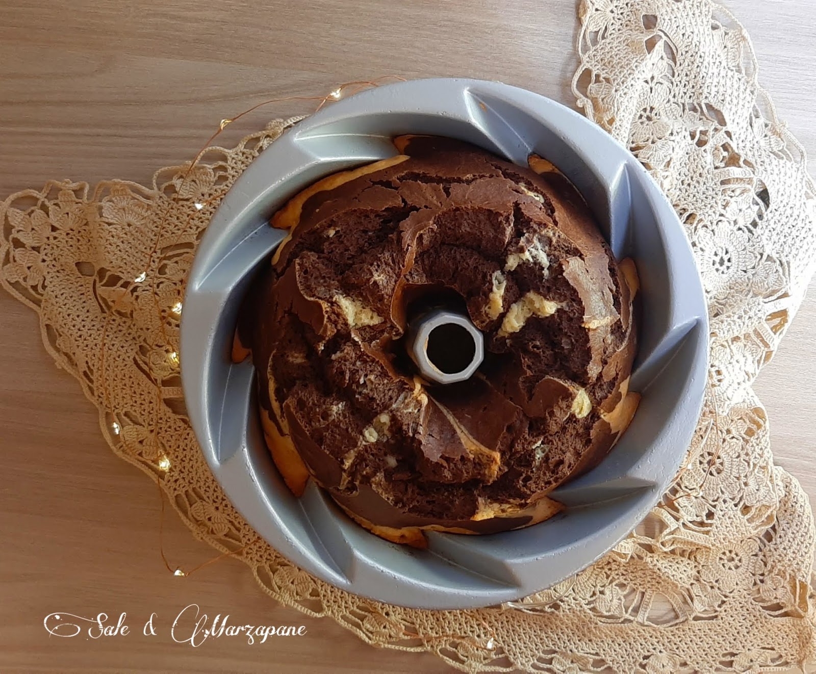 Nella metà di impasto rimasto aggiungete il cacao amaro e mescolate bene, Aggiungete questo impasto nello stampo da ciambella.