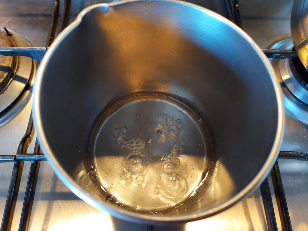 - Per la cremina, in un pentolino scaldare l’acqua, lo zucchero e il glucosio o miele e far bollire brevemente per ottenere uno sciroppo.