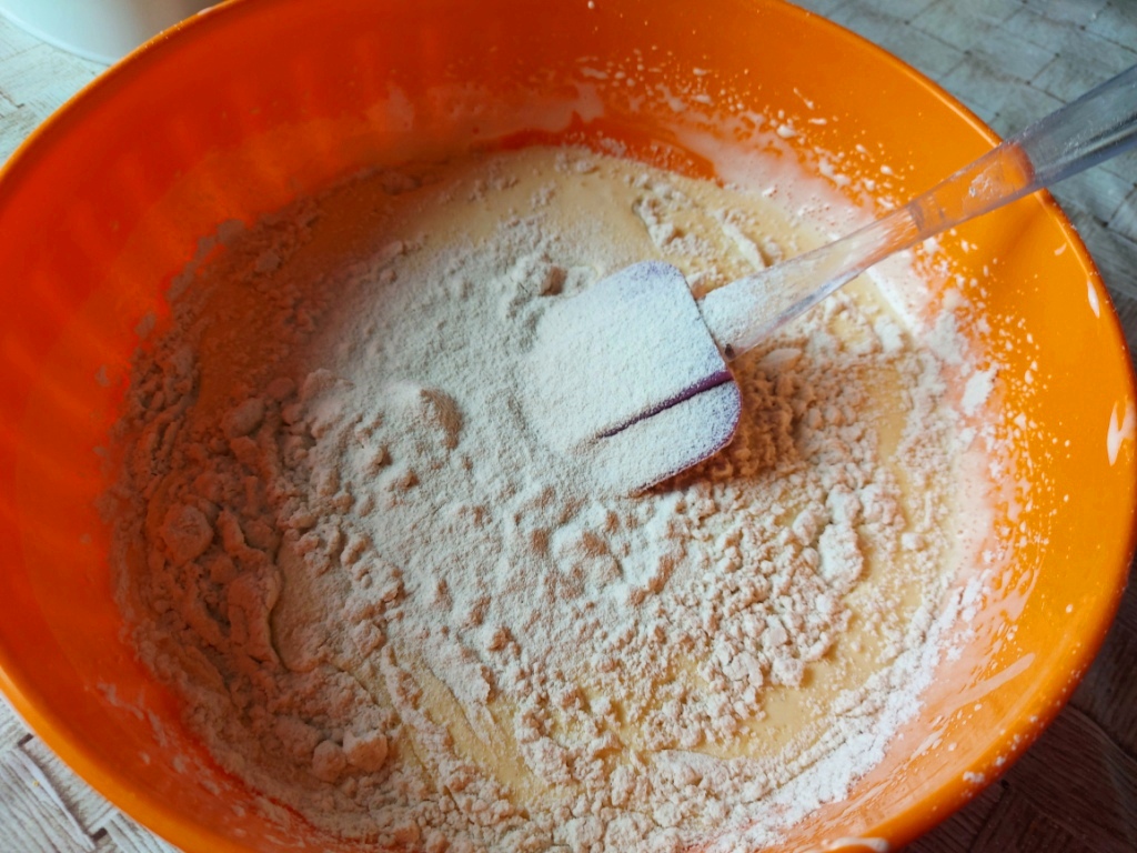 - Inserire il composto di yogurt nelle uova montate ed inc0rporarvi un po’ alla volta la farina setacciata insieme al lievito, mescolando dal basso verso l’alto cercando di non far smontare la massa.