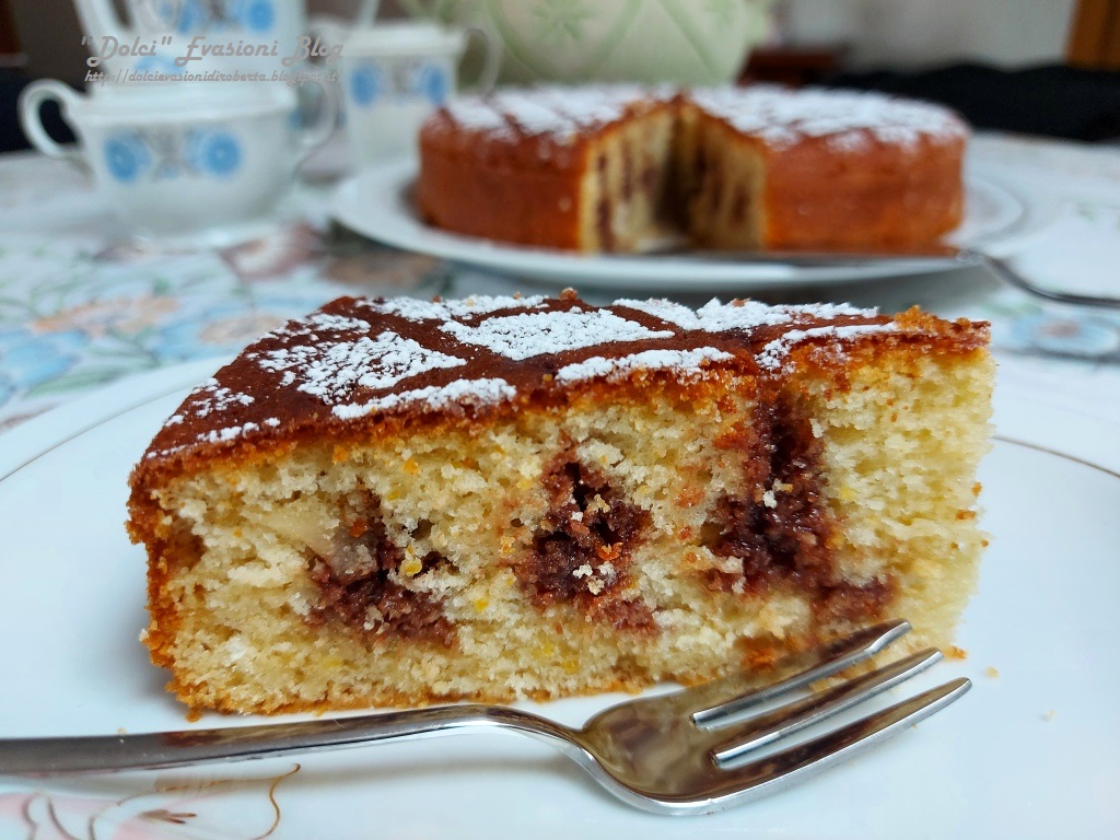 Ciambella allo yogurt e mandarino con gocce liquide di cioccolato