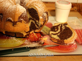 Ungere leggermente uno stampo a ciambella e riempirlo con l’impasto, alternando quello bianco a quello al cioccolato.