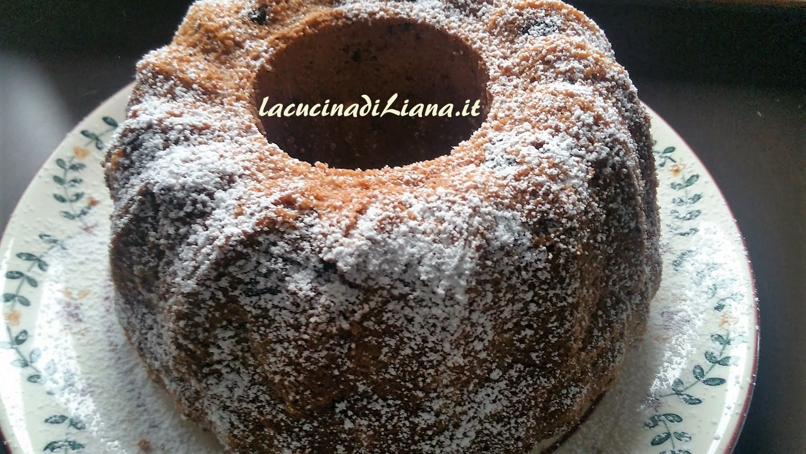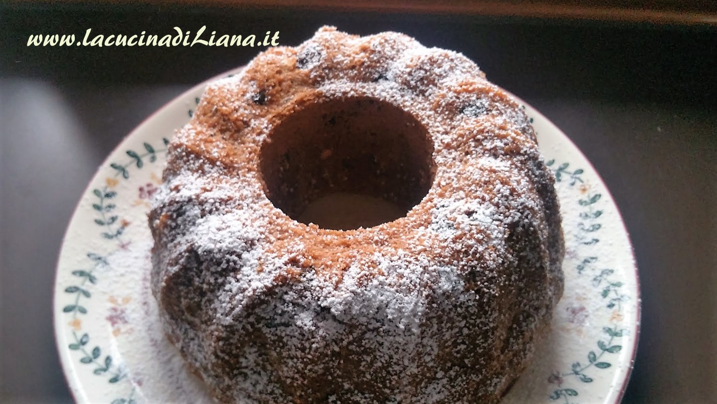 Ecco una bella ciambella, morbida, umida, che si conserva a lungo, con cacao e frutta secca.
